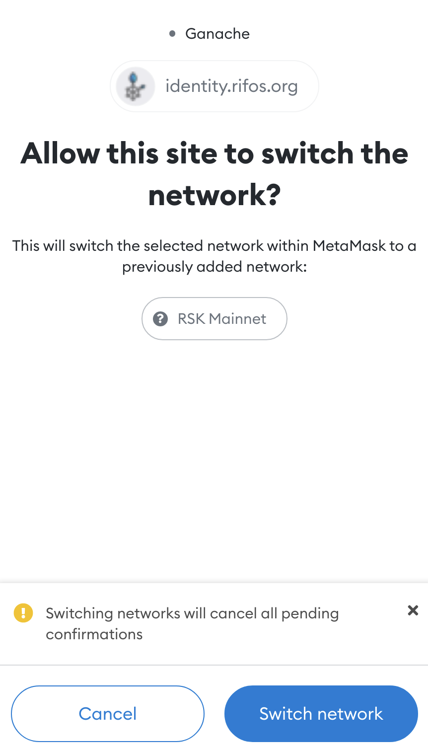 Then click "Switch Network" to connect to the Rootstock Mainnet.