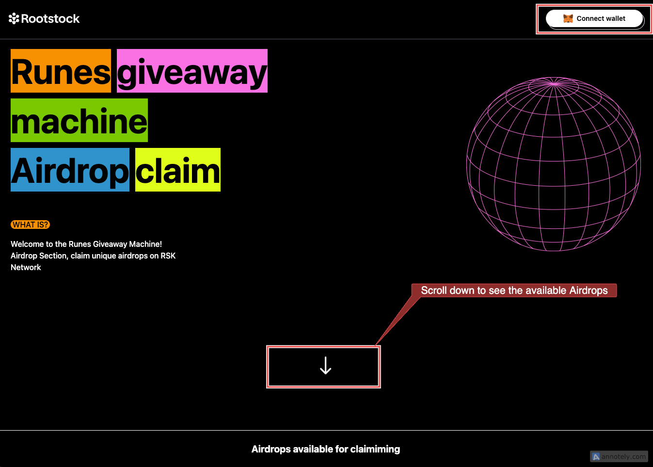 • After connecting your wallet, give it a few moments for the list of available airdrops to load. You can find these airdrops by scrolling down the screen.