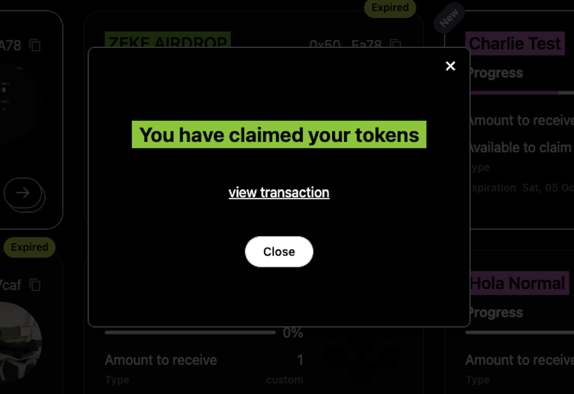 • You will be directed to a screen where you can proceed to claim your tokens.