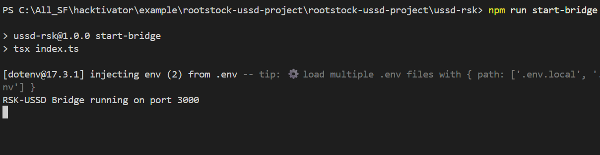 console.log("Rootstock-USSD Bridge running on port 3000");
